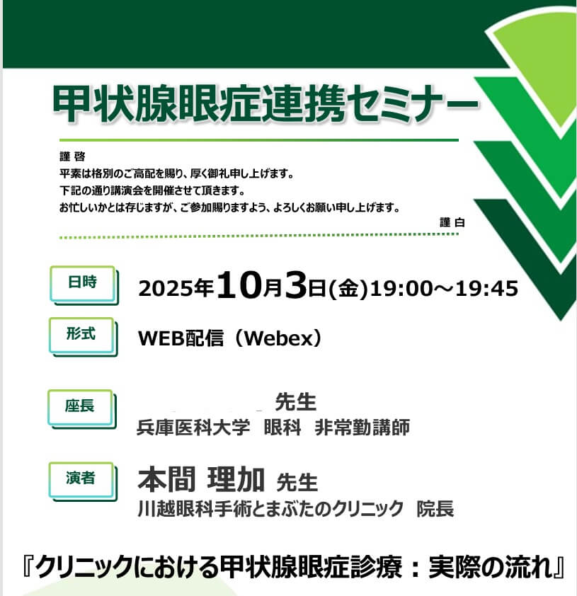 10月3日(金) 甲状腺眼症連携セミナーにて本間院長が講演いたします。